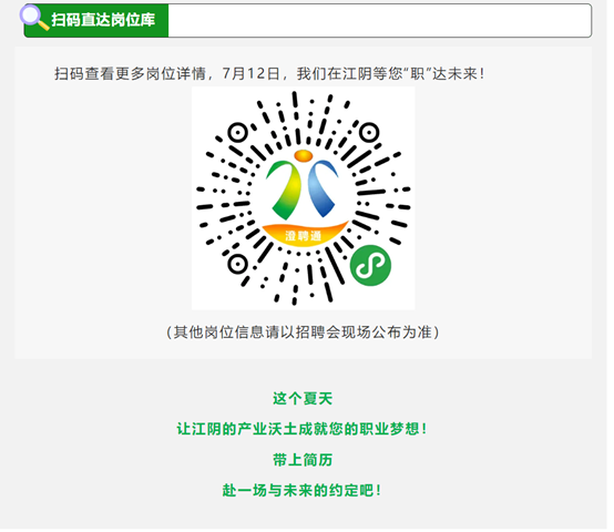 2025夏季青年人才专场招聘会作为江阴市夏季青年人才活动的重要子活动,将于7月12日火热开启!江阴重点企业超150家,携超3000个高薪岗位,邀您共赴这场夏日求职盛宴。